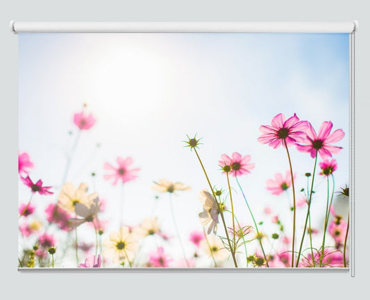 Printed Picture Photo Roller Blind Pink Flowers in Sunlight - RB1009