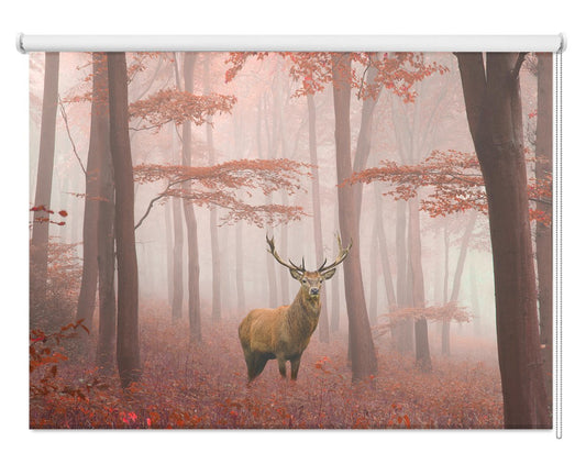 Printed Picture Photo Roller Blind Red Deer Stag in Foggy Autumn Woods - RB990
