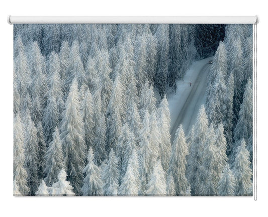 Road through the Snow Forest Printed Picture Photo Roller Blind - 1X487350